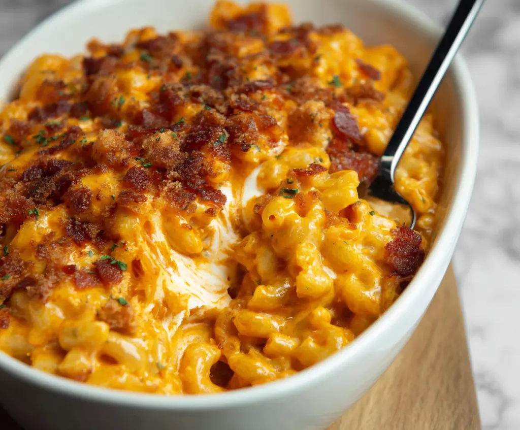 Tip: save now, cook later.Buffalo Mac and Cheese is the perfect mix of creamy, cheesy comfort food with a spicy kick. This dish combines smooth macaroni and cheese with bold buffalo sauce and tender shredded chicken, creating a tasty experience that’s both familiar and exciting. The gooey melted cheese and a hint of heat make every bite satisfying and fun to eat.
