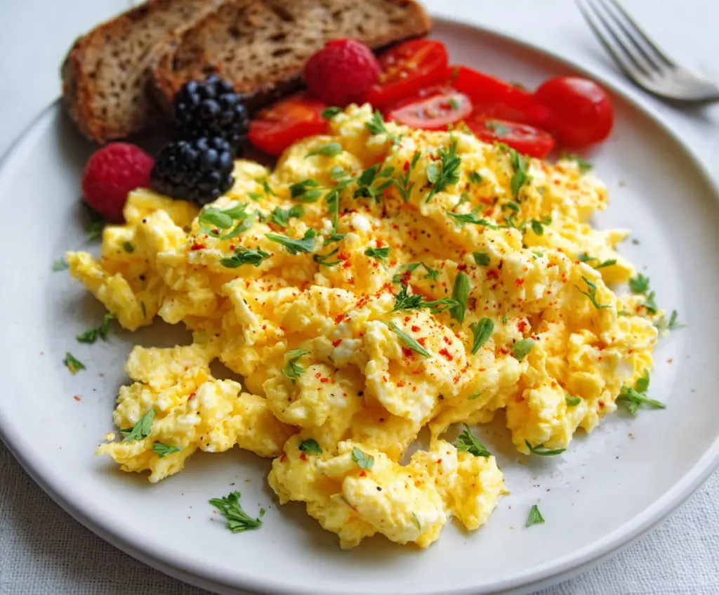 Cooking scrambled eggs gently is key to creamy texture. Use medium-low heat and don’t rush stirring. Here’s how: